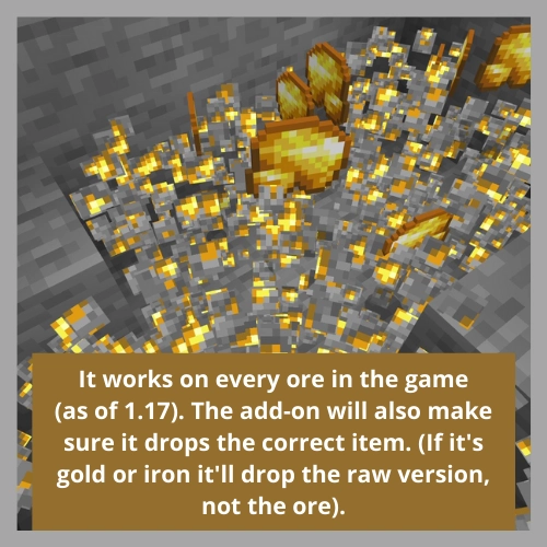 Если в Minecraft BE нужно было приседать для добычи всей жилы (такой мод можно скачать здесь), то с Быстрая добыча руды (Vein Miner) все будет в Майнкрафте в полном порядке. Теперь, при использовании на блоки руды или минералов в MCBE произойдет разрушение всей жилы. А такие блоки, как, например, булыжник, будут добываться по отдельности. Приятной игры!