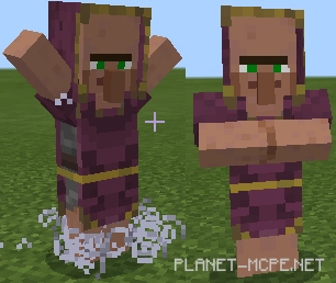 Маг: Призывает своих последователей и атакует мобов с помощью клыков. Патрулирует деревню, защищая ее от враждебных мобов. Может убить всех, кроме Криперов. Не может атаковать с дальнего расстояния, зато имеет высокий урон. Также у него низкая скорость атаки. Если у Вас только что появился Маг, дайте ему Тотем Бессмертия. Пока что уровень у него повысить невозможно.