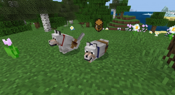 С недавнего обновления у прирученных волков появился инвентарь. Так что теперь ваш друг поможет вам носить блоки и предметы.
