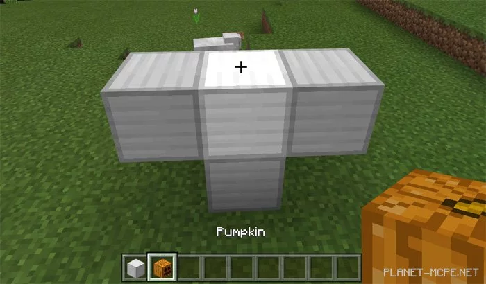 У Вас есть только один способ породить этот живой дом в мире Майнкрафт Покет Эдишн, и создать Вы его сможете точно также, как и железного голема. Установите 4 железных блока, а затем сверху поставьте блок тыквы, и тогда Вы увидите мгновенный спавн дома: