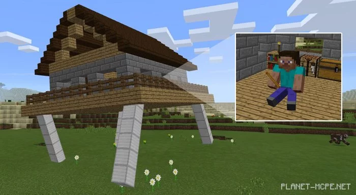 Дом будет постоянно изменять направление своего взгляда, но он не сдвинется с места, если его не потревожит моб или игрок из мира MCPE.