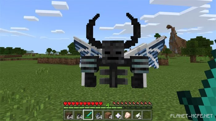 Вы играете в Minecraft PE уже давно, и Вам хотелось бы сразиться с каким-то новым Боссом? Тогда мы рады представить Вам мод «Wither Demon Boss» для Minecraft Pocket Edition, который изменит уже существующего Иссушителя и придаст ему некоторые особенности, как например возможность летать, лазить по стенам, а также атаковать игрока очень опасными снарядами! Внешне данный Босс очень сильно похож на Иссушителя из мира МКПЕ, но у нового моба есть два ангельских крыла и два рога. Могу Вам однозначно сказать, что данный Босс далеко не ангел!
