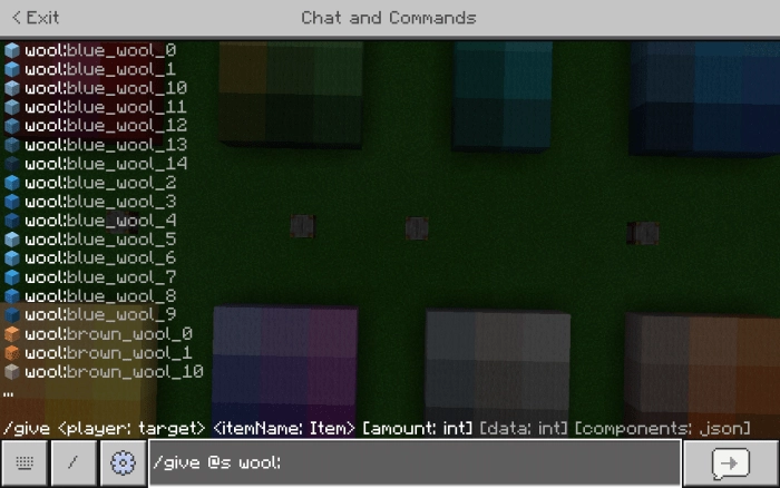 Чтобы получить блоки в Minecraft, используйте команду «/give @ (a, s, p) wool: (идентификатор)». Еще Вы можете ввести команду «/function wool» для получения блоков в шалкеровых ящиках. «/fill» также подходит.