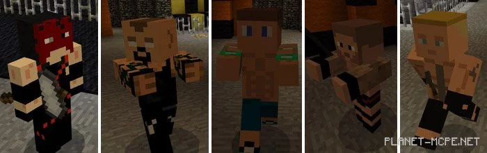 Среди борцов есть следующие известные лица — Кейн, Гробовщик, Джон Сина, Рэнди Ортон и Брок Леснар. Все они заменяют враждебных мобов Майнкрафт ПЕ, которые будут сражаться друг с другом (и игроками). Предусмотрен также рефери, однако он ничего не делает, но его присутствие, без сомнений, делает матч более реалистичным.