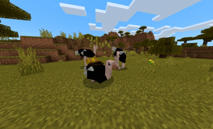 Автор мода Животные (yCreatures) реализовал в Майнкрафт ПЕ больше сотни представителей фауны, которые, в основном, сконцентрированы в саваннах. Встречаться будут, кстати, с определенной вероятностью, а не все разом.