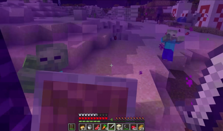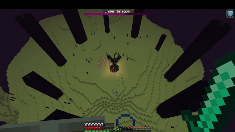 Для построения портала не хватало кремня. На этот раз нас снова выручают криперы. «Я обнаружил, что взрыв крипера может выбить кремень из гравия. Я получил все материалы для портала.» «Мне повезло, у меня было достаточно железа, чтобы сделать полный набор железных доспехов, и достаточно алмазов, чтобы сделать Алмазный меч.» Благодаря броне он смог защититься от Ифрита, но что насчет кристаллов Края, которые поддерживают жизнь дракона Края? «Мне снова повезло, и я сумел найти зачарованный лук с бесконечностью и неразрывными чарами, так что причин беспокоиться за стрелы у меня не было.»
