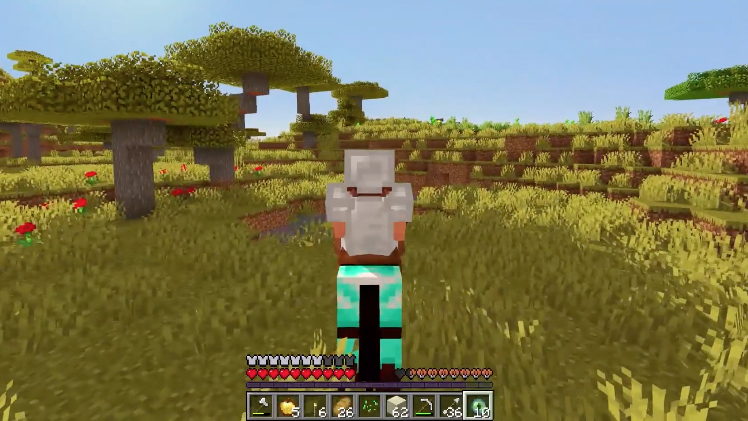 «В режиме без майнинга мне повезло еще больше. Практически с самого начала я нашел инструменты и шесть блоков обсидиана. Для получения дополнительных предметов я решил отправиться в деревню для торговли с сельчанами.»