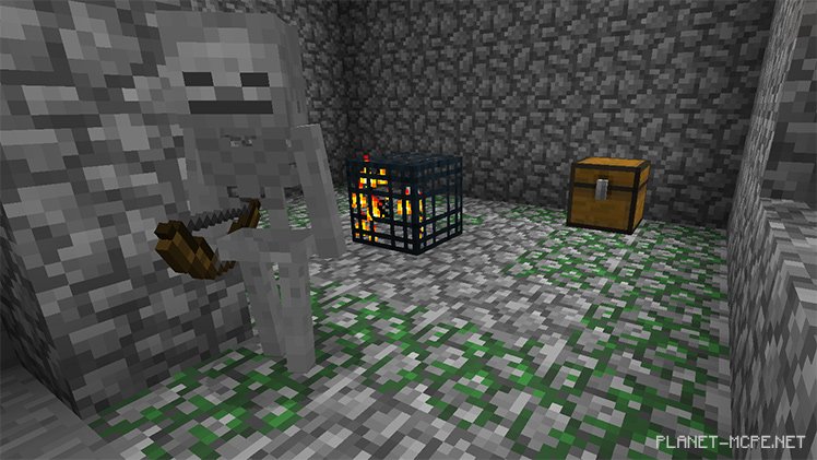 Послушайте меня! Я говорю так, потому что добыча в скоплении замшелого булыжника почти наверняка означает, что Вы столкнулись с подземельем мира МКПЕ — маленькой, естественно сгенерированной структурой, содержащей сундук или даже два, полных полезных лакомств и спавнер мобов. В списке лакомств может быть всё: от гнилой плоти до седла, бирки и конские доспехи, в то время как спавнер мобов может быть использован для создания мобофермы в Minecraft Pocket Edition.