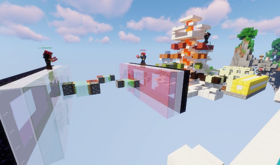 На этой карте игрокам предстоит пригласить своих самых близких друзей Minecraft и сразиться с ними в игре на выбывание. Выживут только самые сильные и проворные, остальные же канут в бездну, раз и навсегда оставив возможность стать победителем. Прыгая по небесным островам, перепрыгивая через препятствия и взбираясь по лестницам, участникам нужно удержаться на игровом поле и постараться скинуть своих соперников.