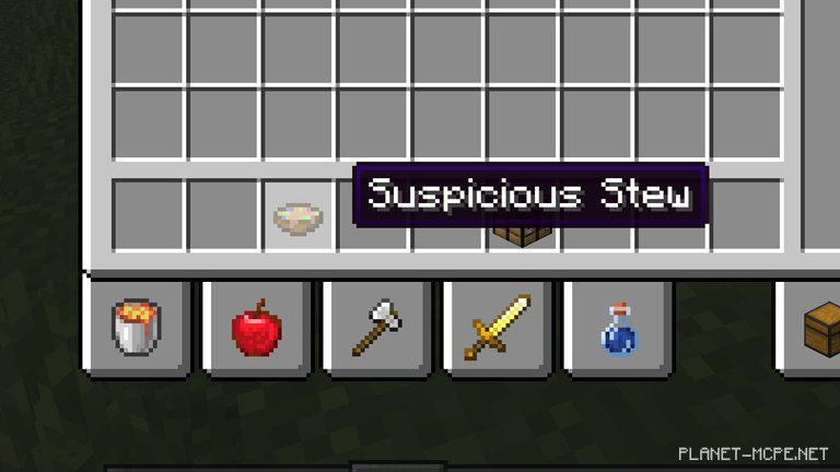На тот момент что-то пошло не так, и мой желудок начал шуметь и разговаривать со мной, словно в нем завелись киты. Но спасибо большое понимающим Java-разработчикам. Они наложили мне целую тарелку подозрительную тушенку (Suspicious stew). Я знал, что я им понравился. Пока я кушал угощение, они объяснили мне, что она делает в Майнкрафт Покет Эдишн.