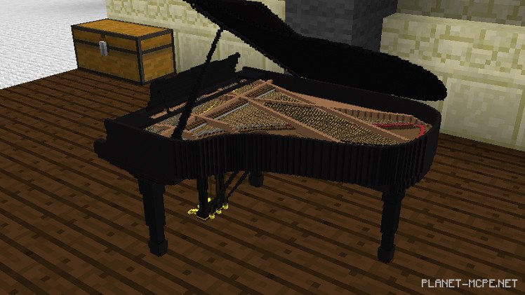 Смотря снаружи, пианино выглядит как один твердый кусок конструкции. Что-то сделано из дерева и струн, как обычное пианино. Вы никогда не догадаетесь, что оно на самом деле состоит из тысяч блоков камня, шерсти, угля, песчаника и т. д.