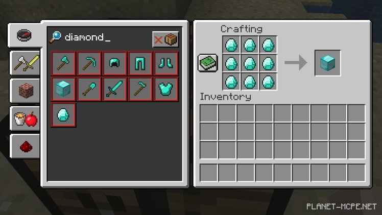 Алмазы такие желанные не только из-за их стоимости, но еще и потому что, что это самый прочный материал. Если изготовить кирку с применением алмаза, то она будет способна сломать даже обсидан, на что не способна ни одна другая кирка. Использовать алмаз можно не только в качестве инструментов, но и защиты. Броня, сделанная из этого материала станет самой долговечной и непробиваемой из всевозможных вариантов во всей игре.