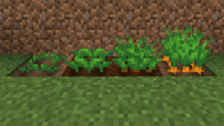 Но прежде чем съесть первую попавшуюся морковь, подумайте о будущем своего Minecraft персонажа. Чтобы ему было что кушать в ближайшее время, посадите ее лучше в землю, и спустя некоторое время Вы получите не одну, а целых 1-5 морковей! Если Вы используете зачарованный предмет, то их количество увеличится.