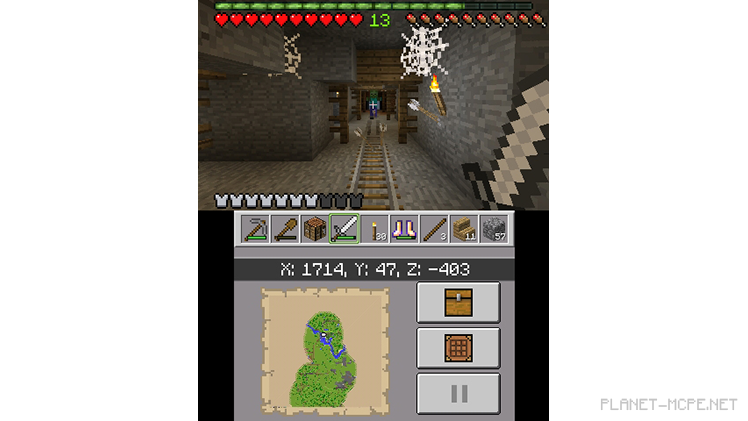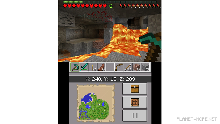 Двойная настройка на экране помогает сделать крафт проще, чем был раннее. У игрока появляется быстрый доступ к инвентарю, также удобная возможность смотреть на специальную карту, расположенную ниже. Такое добавление идеально подойдет для тех игроков Minecraft, которые любят изучать мир.
