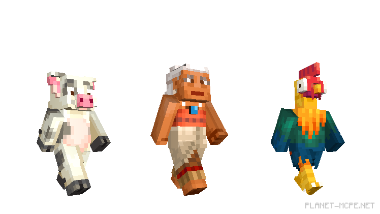 В пакете персонажей Моаны есть бесстрашный экипаж тихоокеанских островитян, каменистый полубог Мауи, гигантский лебёдка для захвата золота, красные коралловые пираты, водянистые явления, вулканические демоны и другие обитатели глубины. Вы даже можете играть в Майнкрафт ПЕ за смертельно глупый цыпленок. Посмотрите на персонажей, найденных в пакете ниже, или отправляйтесь прямо в Marketplace, чтобы быстрее получить их.