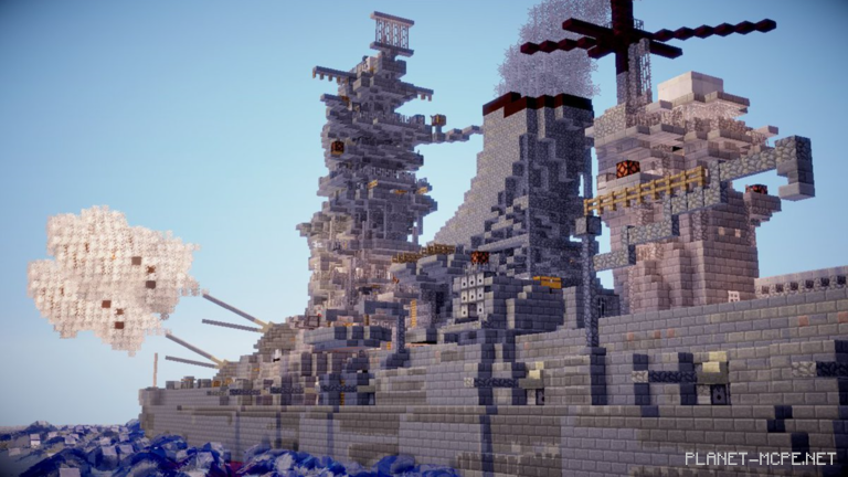 Эти корабли — это работа строителя Minecraft, Yamada-Ken. Я был впечатлён уровнем детализации Yamada-Ken и его умным использованием пушек TNT, чтобы показать мощь Ямато. ОГОНЬ!