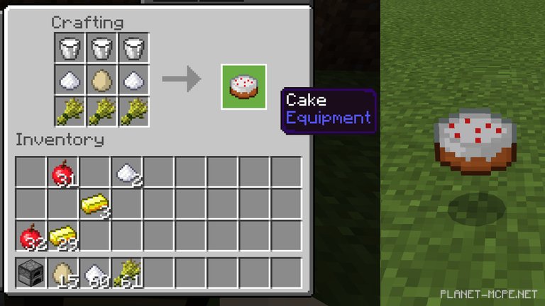[4/6] — Торт! Еда, которая почему-то приятнее, чем выигрыш в лотерею. Для приготовления понадобится три пшеницы, яйцо, два сахара и три молока. Все эти ингредиенты несложно найти, плюс ко всему, Вы получите потрясающий торт! Я думаю, это одно из самых лучших изобретений человечества со времен, когда все питались нарезанным хлебом. Если честно, то хлеб — это такое себе блюдо, подавайте вместо него торт!