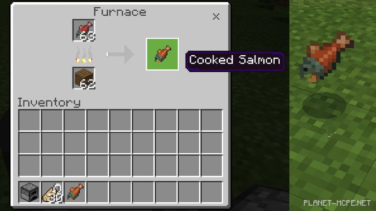 [2/6] — Хотите устроить изысканный вечер? Мне нравится Ваш выбор! Я бы предложил по такому случаю приготовить запеченного лосося. Для начала Вам нужно взять удочку и отправиться на рыбаку, поймать нужное количество рыбы, а затем просто засунуть ее в печь с любым топливом для восхитительного блюда. Немного подождем и все, Ваш гастрономический шедевр готов к употреблению! В Minecraft помимо мяса Вы также найдете множество видов морских обитателей.