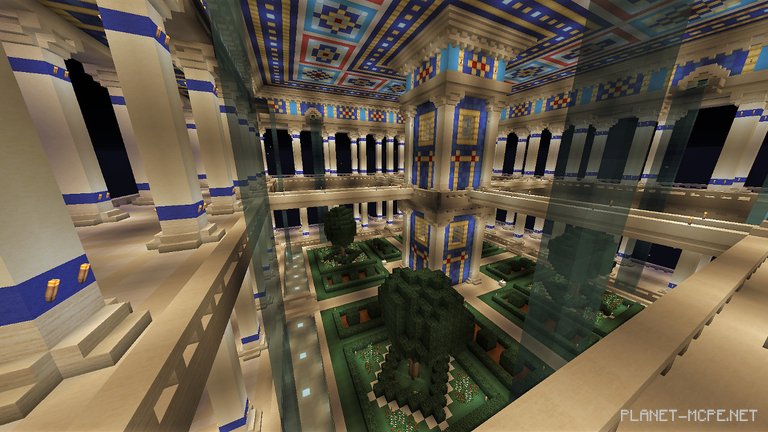 Сооружение выполнено в синих и желтых цветах не просто так, а на основе реальных Висячих Садов. Они принадлежали к одним из семи чудес света Древнего мира, вместе с Александрийским Маяком и Колоссом Родосским. Ни один человек пытался воссоздать удивительное произведение искусства, художники писали картины, поэты слагали стихи, описывали, пытались передать и «оживить», давно стертые с лица земли, Висячие сады Семирамиды в Вавилоне. И даже Майнкрафт Бедрок уже успел повидать их. Это довольно распространенный объект строительства, который позволят игрокам продемонстрировать свои навыки.