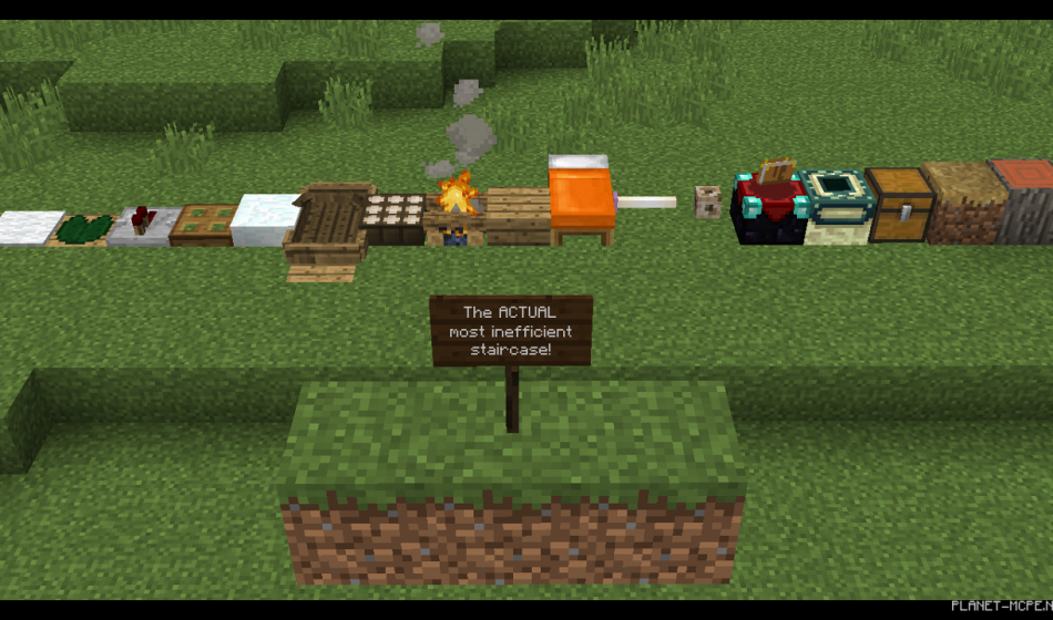 Победителем в конкурсе по изготовлению самой неэффективной лестницы стал ChillYourJetskis! Посмотрев на то, как ловко он выкрутился из положения и создал дополнительную ступеньку путем смешения блоков, я понял, что можно придумать гораздо большее и создать еще более неэффективную лестницу. Так что Вы тоже можете разработать дополнительные блоки и попасть в историю Minercaft, как автор самой неэффективной лестницы!