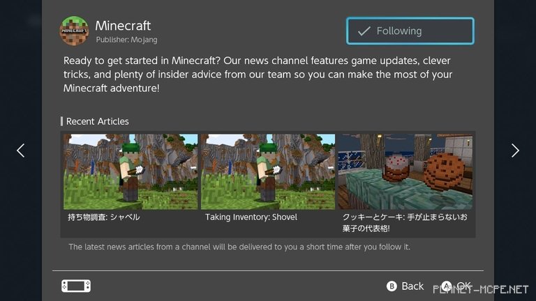 Вот как Вы можете следить за новостным каналом Minecraft Pocket Edition на консоле Nintendo: