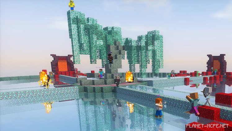 Вашей задачей на карте «Столкновение плотов» является задача по взрыву сундука Вашего противника своими пушками. Ваш пиратский плот (бюджетная версия пиратского корабля) можно настроить с помощью некоторых правил, но также с помощью нескольких видов блоков: колеса, которым можно управлять и, конечно же, сундуком с сокровищами. Обязательно защищайте свой сундук блоками и своими морскими знаниями в Майнкрафт!