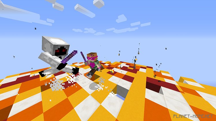 Майнкрафт ПЕ настолько универсален, что при определенных манипуляциях, можно создать все, что угодно! Мы не раз сталкивались с симуляторами гонок, с головоломками с видом сверху, а теперь и с самым настоящим файтингом. Ваш экран будет заблокирован и сосредоточен на небольшом прямоугольном поле, где Вы будете контролировать различных персонажей из мира Minecraft PE. Причем здесь все устроено как в самых лучших файтинг-играх: каждый персонаж обладает своей атакой и уникальными способностями. Вам необходимо изучить каждого и научиться управлять ими. В этом Вам так же может помочь бот, против которого Вы сможете потренироваться. Но, естественно, веселее всего сражаться против друзей!