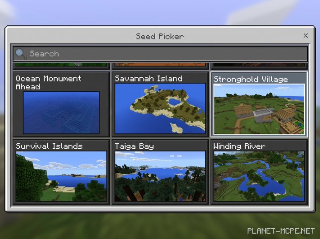 Разработчики Minecraft Pocket Edition дополнили недавно-введенное меню с сидами. Раньше в разделе «Сиды» было всего несколько сидов – теперь де выбор сидов значительно увеличился. Эти сиды вы можете выбирать во время генерации нового мира. Так же вы можете воспользоваться своими сидами, которые вы нашли в интернете, или каким-то образом вы сами создали комбинацию сида с очень интересным ландшафтом.