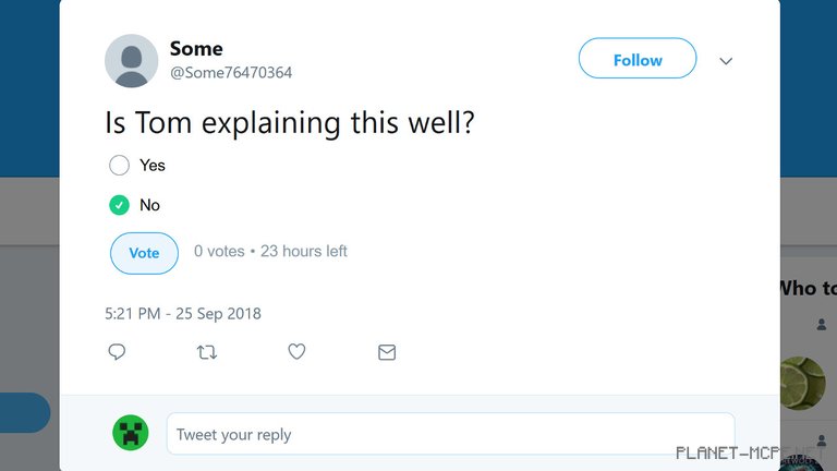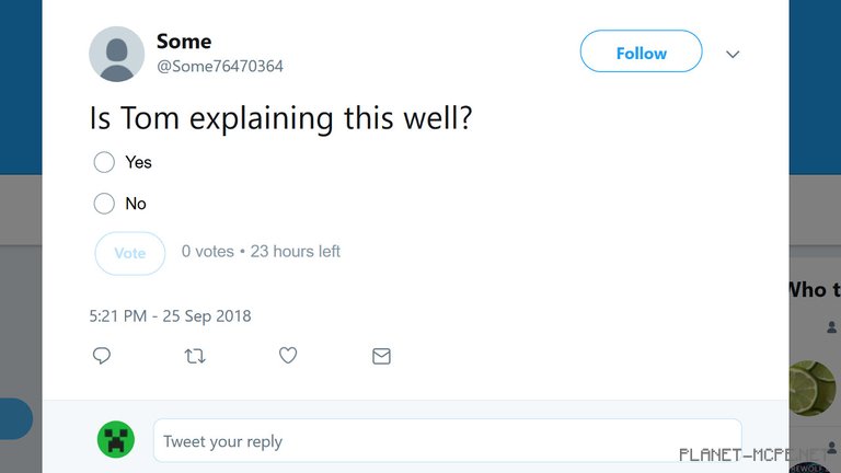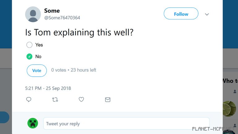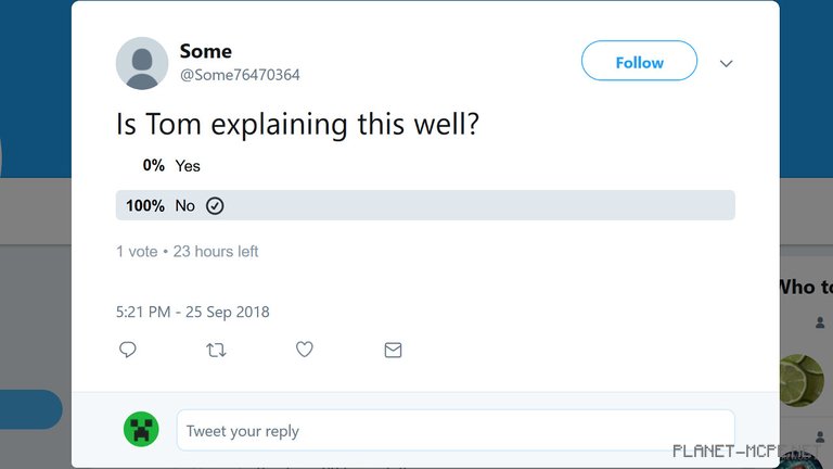 [1/4] — Вот опрос, который я сделал только что. Такой же Вы увидите во время трансляции. Подпишитесь на @Minecraft в Twitter чтобы не пропустить голосование.