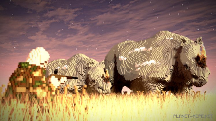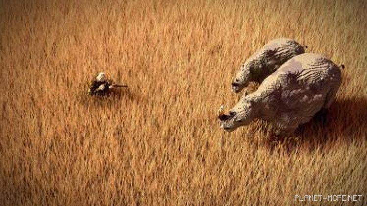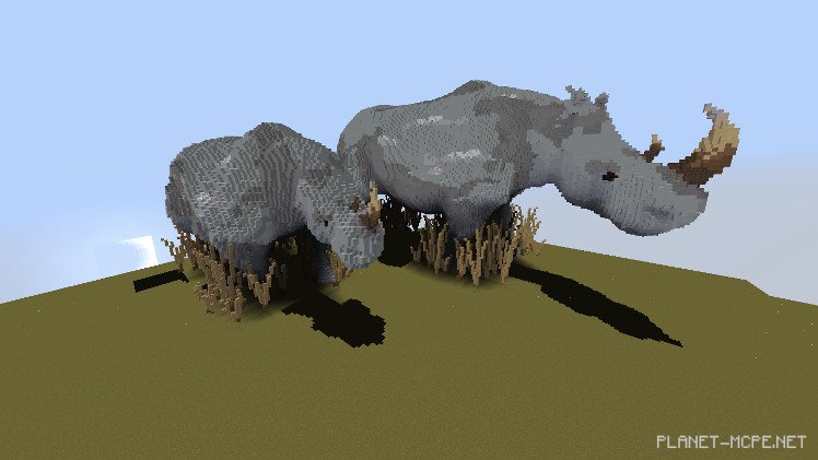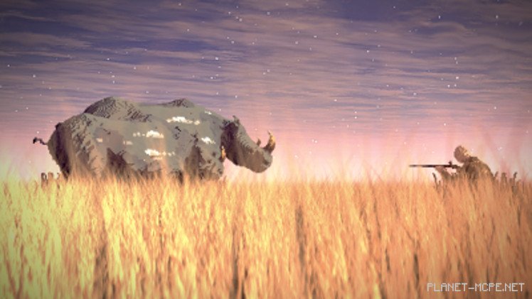 К сожалению, не все так радужно: наполовину спрятавшийся в кустах человек направил ружье на беззащитных созданий. Совсем недавно вид белых носорогов полностью исчез из-за браконьерства. Это сподвигло строителя MineSheep обратить внимание на данную проблему путем своего творчества в Minecraft Pocket Edition.