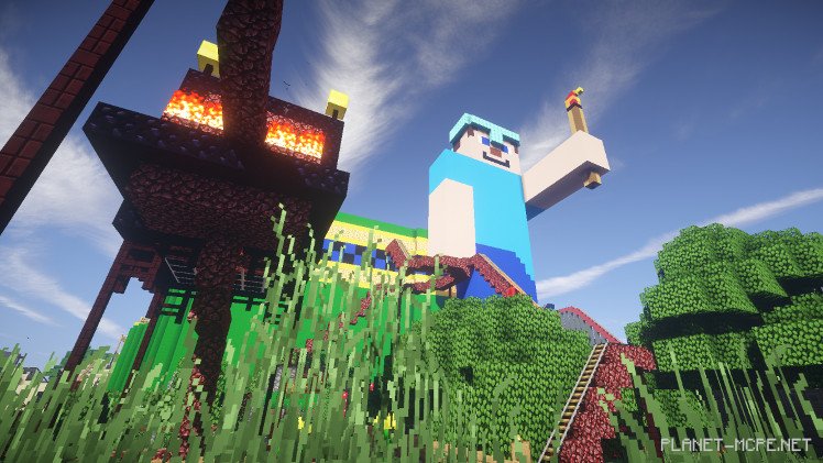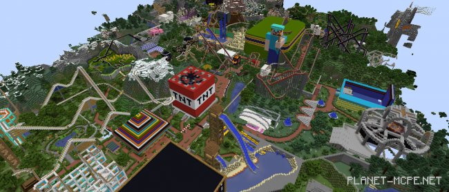 Представьте себе огромный парк развлечений с 38 американскими горками, с играми, в которые Вы можете поиграть вместе с друзьями, с продовольственными лавками и многое другое. Теперь представьте, сколько работы потребуется для постройки, и будьте рады, что строитель Daan B сделал это для Вас! Его рай с американскими горками занял 200 часов, но теперь он открыт и для Вас в Minecraft PE.