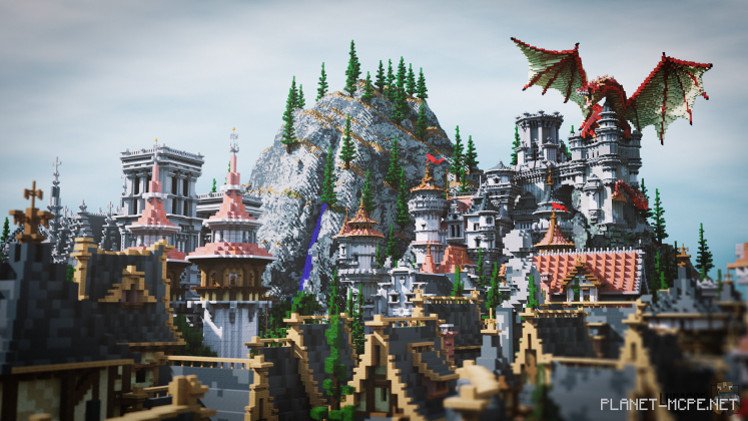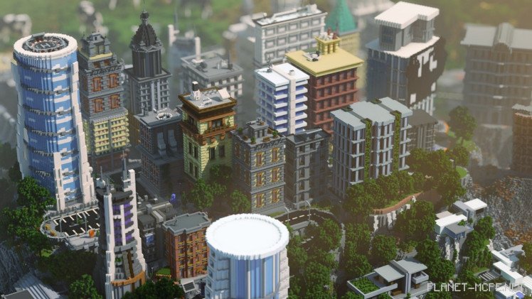 И города. На любой вкус и цвет, любой формы или размера: большие и маленькие, футуристические и древние, абсолютно реальные и фантастические. Любой пользователь Minecraft Pocket Edition найдет частичку себя в работах компании Pixelbiester — немецкой команды строителей Майнкрафт ПЕ, которые имеют очень неплохие художественные способности.