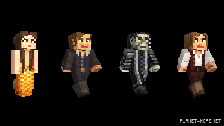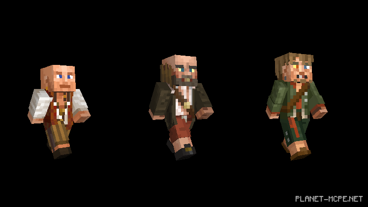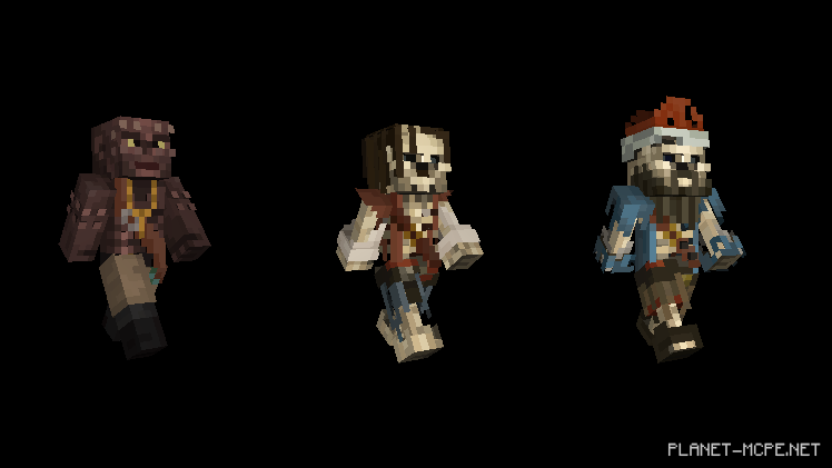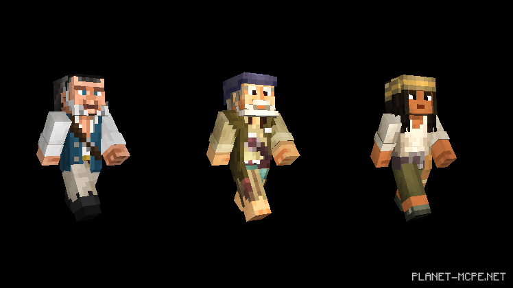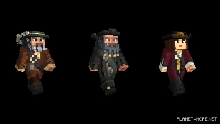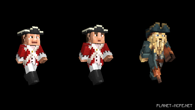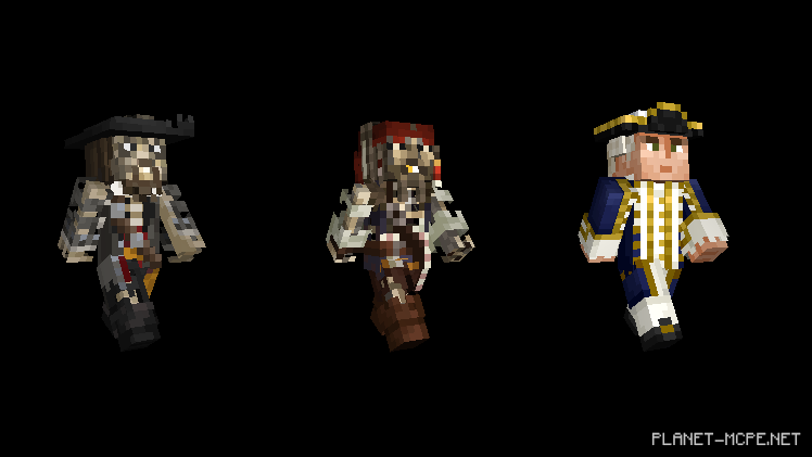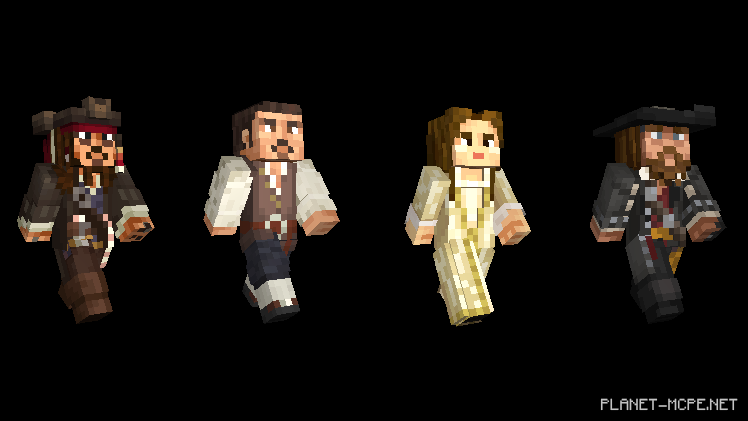 Но у меня для Вас отличная новость: Вы можете расслабиться и не переживать за свои руки и ноги! Наконец-то появилась возможность одеваться как пират с новым пакетом пиратов Карибского моря. Кто может лучше исследовать кораблекрушения в океанах Minecraft Pocket Edition, чем сам капитан Джек Воробей, Черная Борода, Дэви Джонс и более сорока скинов из всех пяти фильмов?
