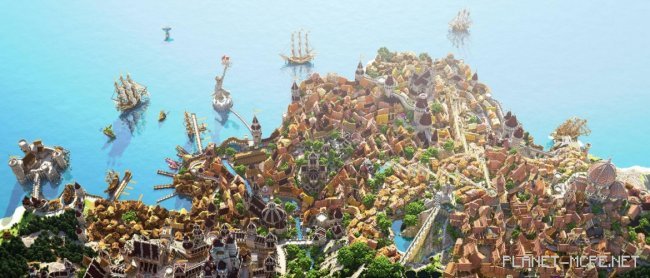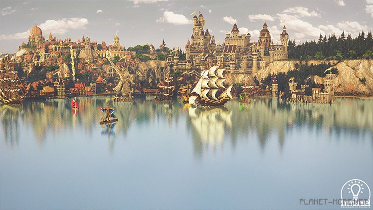 «Планирование очень просто», — говорит ElysiumFire. «Наши планировщики занимают интересное место в терраформировании … и они начинают строить планы: они рисуют уличные линии на земле, строят позиции, места на стыках, сады … постепенно покрываю всю местность в MCPE.» Это город-порт, а это предполагает огромные, высокие лодки в гавани, грандиозные каменные мосты через реки, а также длинные тонкие причалы, которые тянутся к кораблям, как пальцы.