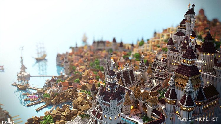 Вы можете увидеть европейское вдохновение в зданиях в мире Minecraft PE: красные крыши, купола собора, колонны повсюду, и такой огромный город, что потребуется несколько дней, чтобы исследовать каждый переулок в МКПЕ.