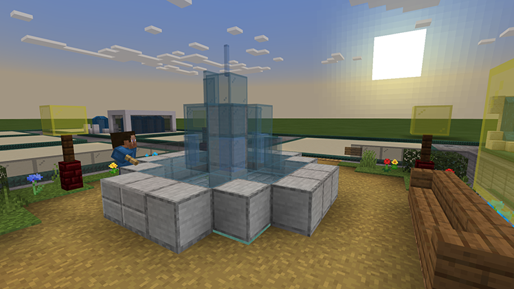 Витражный фонтан, построенный на недавно прошедшем конкурсе по строительству фонтанов в Minecraft Bedrock за ограниченное время.