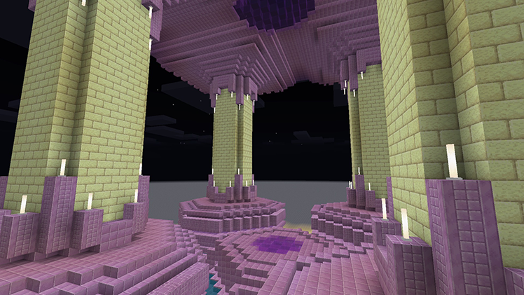Если Вы решите построить подобную структуру, Вам, вероятно, понадобится не только пурпурный блок, но еще и терракота. Смешивание материалов — отличный способ разнообразить сборку, к тому же сложно будет набрать необходимое количество пурпурных блоков на столь масштабный объект.