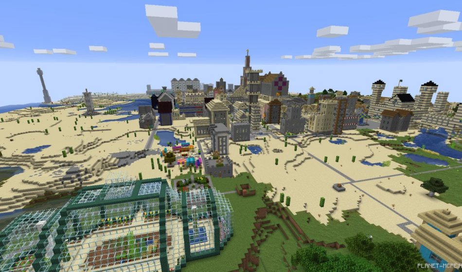 «Город состоит из множества дворцов, принадлежащих большим семьям, королевского замка, уютных переулков с магазинами, музеев, морского биологического исследовательского института (построенного после выпуска обновления Aquatic!), королевской конюшни, красивого района доков, нескольких городских площадей и т.д. Интересный факт! Первые дома, которые мы построили, все еще там, тот район мы называем «старым городом».