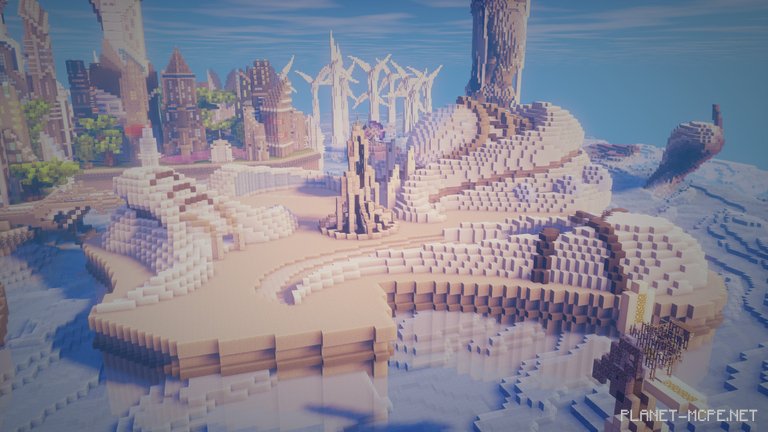 Окончательный результат поразителен в MCPE — это частично футуристический научно-фантастический, частично Атлантис, с элементами, которые могут вписаться в город Зора из последней игры Zelda и подводного города Ганган в Набу из Phantom Menace.