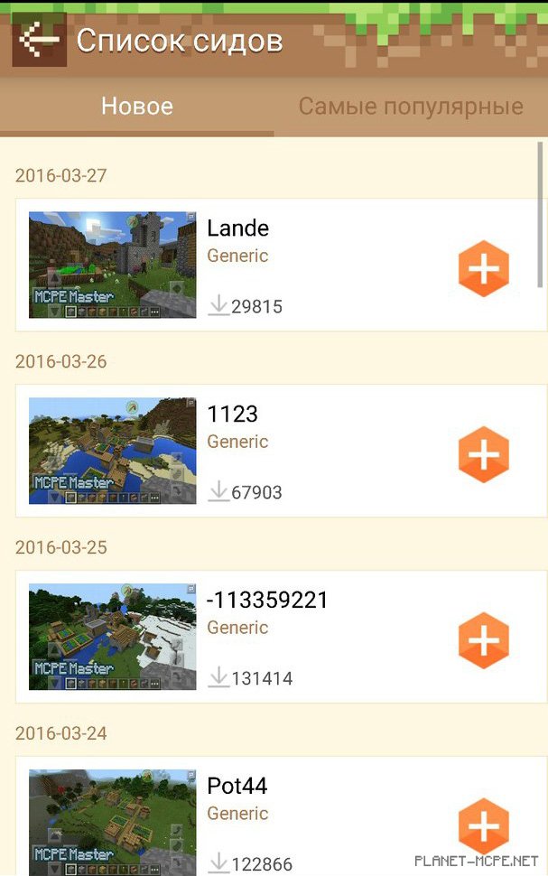 Перейдите в раздел с сидами, и нажмите напротив сида, который Вам понравился по иконке «+». После чего программа автоматически создаст карту с этим сидом (вам не нужно ничего вводить). Просто войдите на новую карту и наслаждайтесь выбранным Вами сидом.