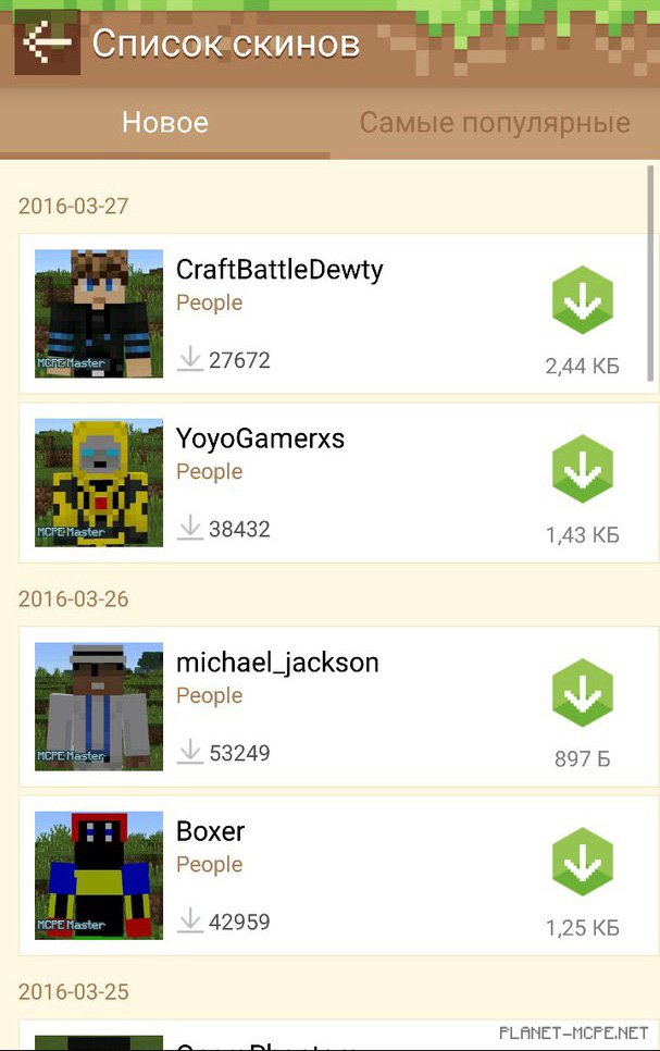 Перейдите в раздел со скинами. Найдите понравившейся Вам скин — затем нажмите на иконку загрузки. Дождитесь пока скин скачается. Когда скин скачался — напротив него появится кнопочка — «Apply to the game» — нажмите на неё, чтобы установить данный скин на игровой клиент MCPE.