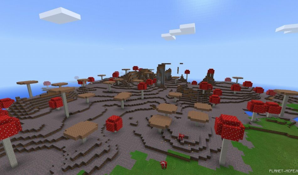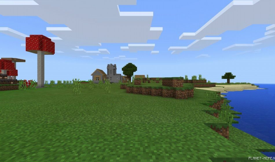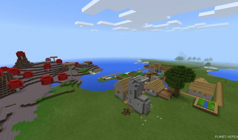 Как только вы появитесь в мире Minecraft Pocket Edition с этим сидом, то сразу увидите деревню. Немного осмотревшись можно понять, что она находится практически в грибном биоме.