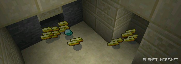 В сундуках Вы найдете много золота и даже алмазы: три алмаза, 2 железных слитка, 4 изумруда, 34 золотых слитка, 36 костей, 19 гнилой плоти.