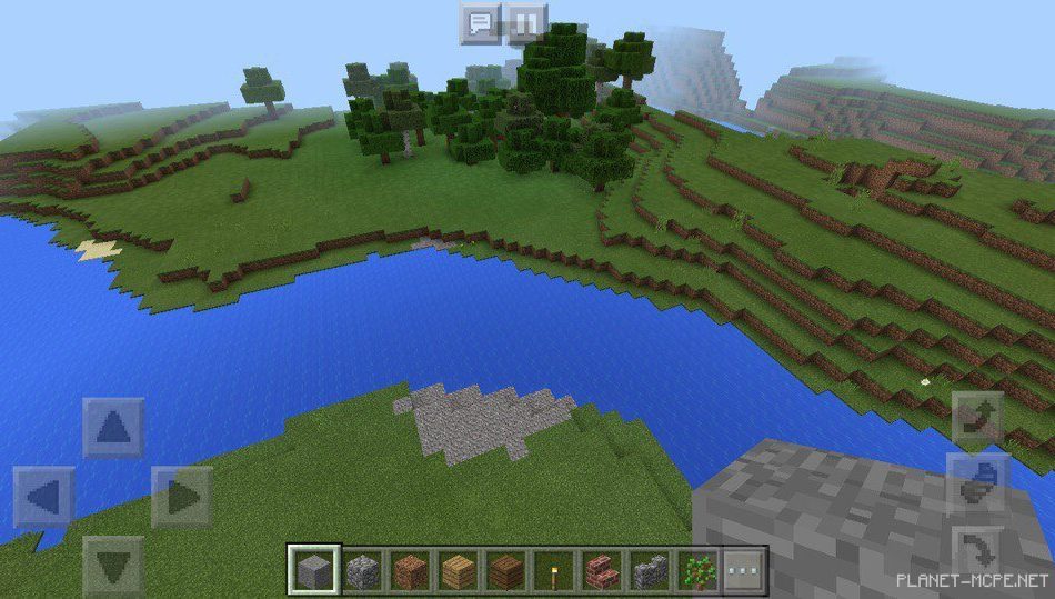 Постройте красивый дом в Minecraft PE 1.2 с использованием этих досок. Рядом расположена река на этом сиде, которая протекает в извилистом направлении на площадке MCPE. Это очень приятно выглядит.