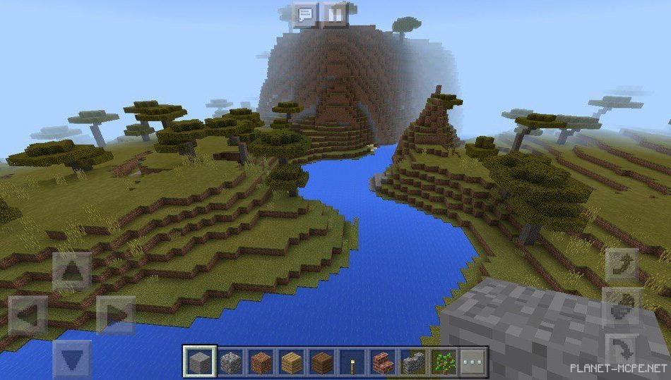 На этом сиде в Minecraft Pocket Edition вы заспавнитесь в биоме, где растёт акация. Акация-это очень красивое дерево, из которого можно сделать доски приятного цвета.