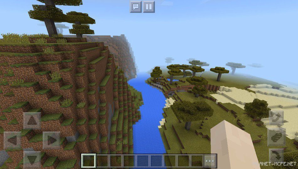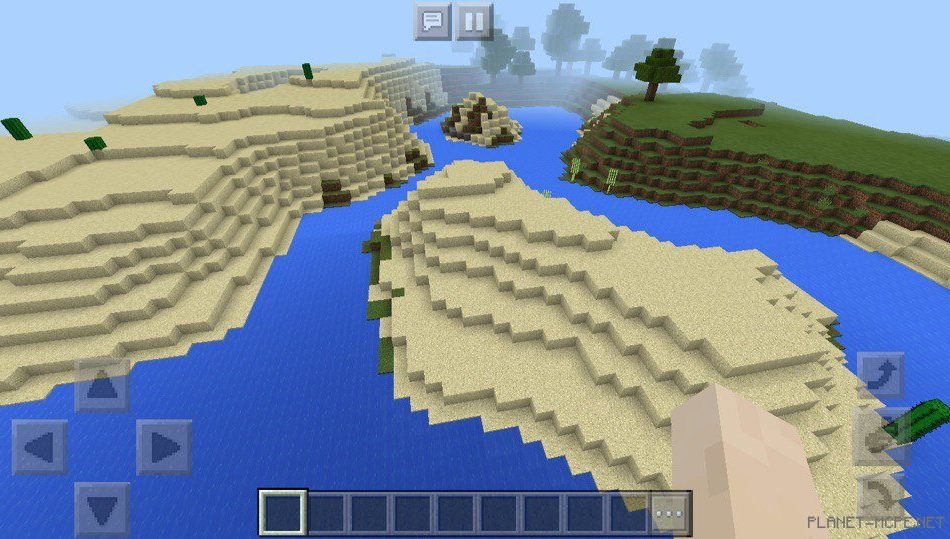 Также есть красивые реки, украшающие пейзаж на площадке мкпе. В Minecraft Pocket Edition будет приятно погулять по такой территории, ведь все выглядит очень ухожено и привлекательно в майнкрафт пе.