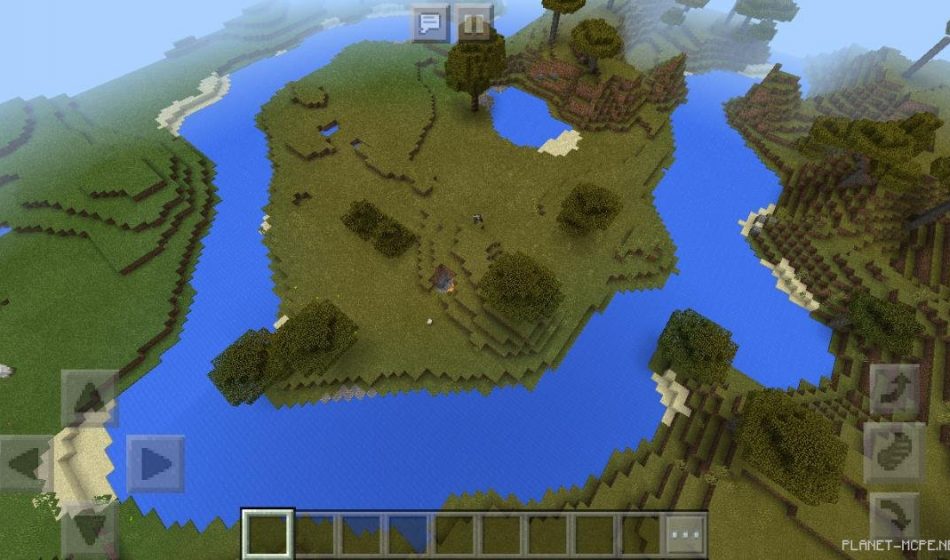 В Minecraft Pocket Edition, у вас есть возможность увидеть то, что одна из рек протекает вокруг большого острова, расположенного в Minecraft PE, на этом острове также располагается маленький водоем на площадке MCPE.