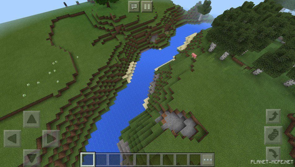 Также рядом располагается другая река, которая протекает в равнинной местности на площадке МКПЕ. Рядом располагается березовый лес в Minecraft Pocket Edition и немного пещерок в Minecraft PE 1.2.