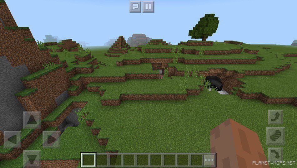 На этом сиде в Майнкрафт Покет Эдишн вы появитесь на равнине, около которой расположена пещера в Майнкрафт ПЕ 1.2, в которой есть какие-то ресурсы, которые могут быть полезными для использования во время игры на площадке МКПЕ.