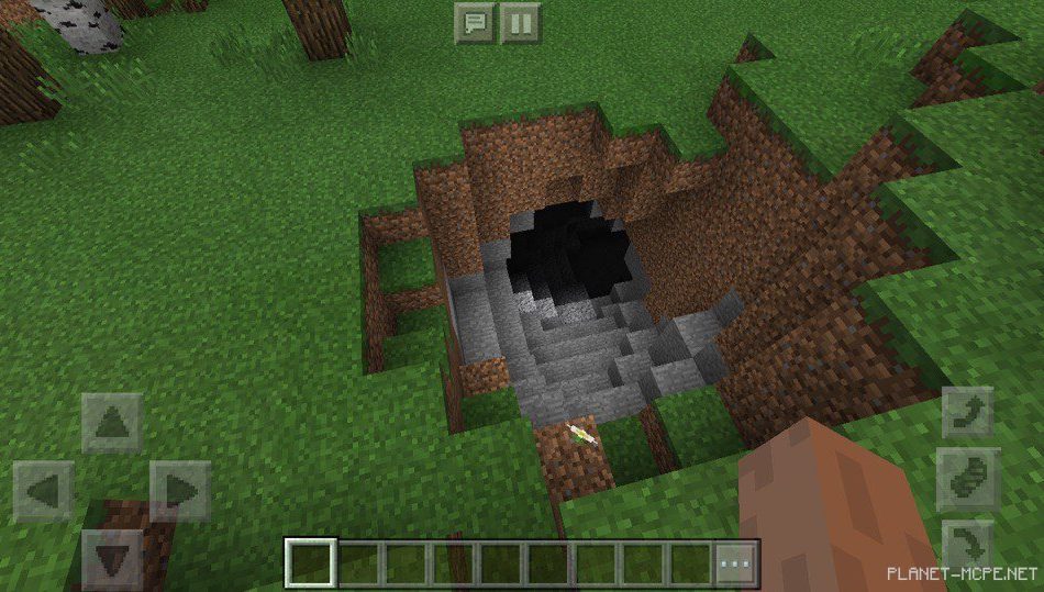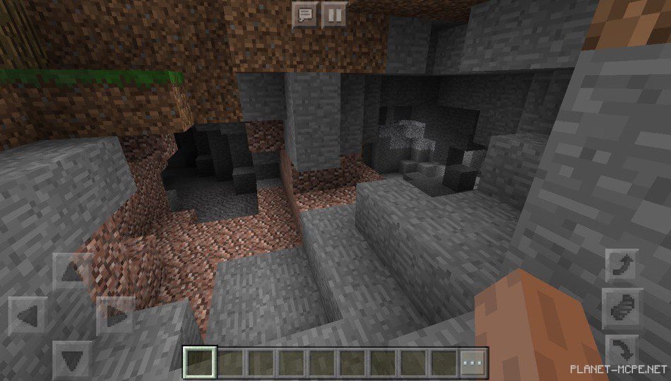 В Minecraft Pocket Edition рядом расположена пещера, даже, можно сказать, что их две, так как есть вход справа и слева.